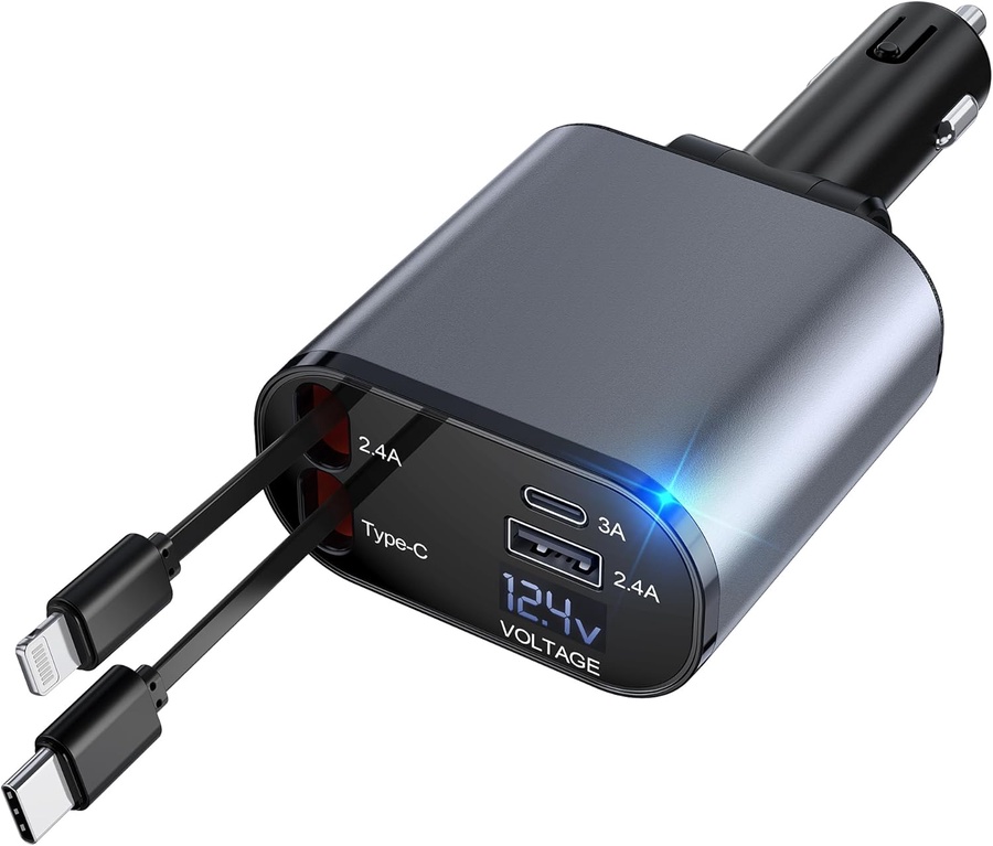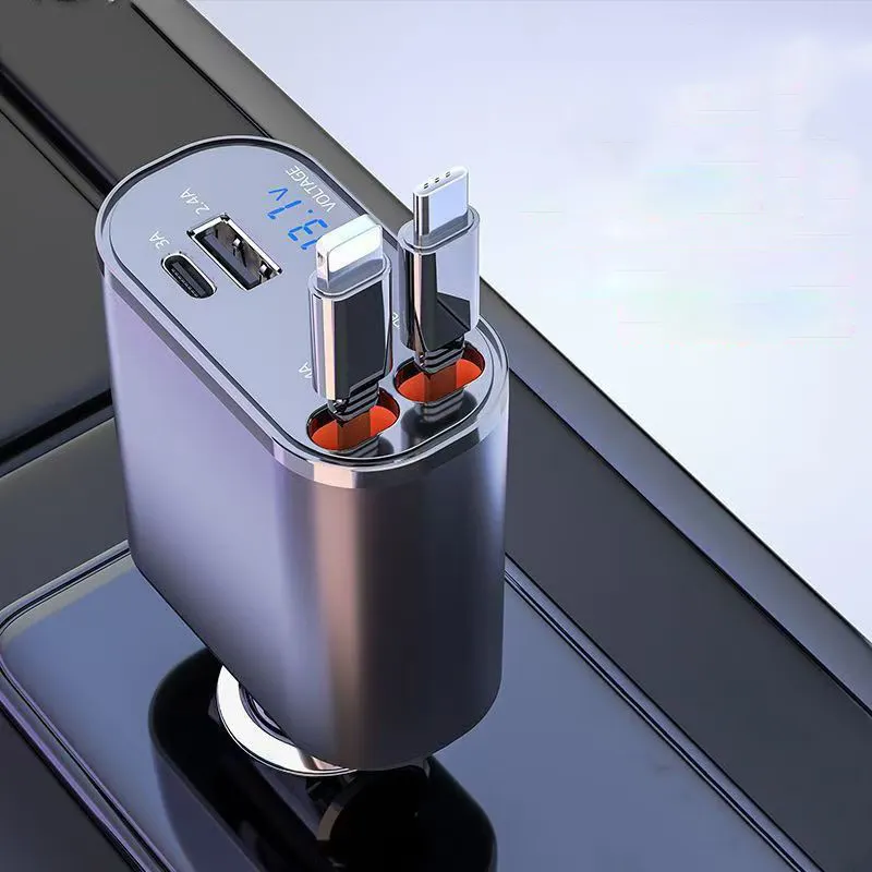 شاحن العربية الرباعي القابل للسحب هو الحل الأمثل لشحن أجهزتك بسهولة وأنت في الطريق. تصميمه أنيق ومتين، وبييجي بكابلين مدمجين يدعموا الآيفون والأندرويد، بالإضافة لمنفذين تقدر توصل فيهم كابلات تانية، يعني تقدر تشحن 4 أجهزة في نفس الوقت! المميزات: بيدعم الشحن السريع كابلات قابلة للسحب تمنع تشابك الأسلاك وتحافظ على ترتيب العربية. رأس مرنة 180° تناسب أي وضعية استخدام. خامات متينة تضمن عمر افتراضي طويل. ثبات عالي وأداء مستقر أثناء القيادة. شاحن عملي وموفر للمساحة، هيخلي شحن أجهزتك في العربية أسهل وأسرع!